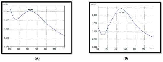 3.2. Characterization of Silver Nanoparticles through A. indica and P. pinnata Leaf Extract