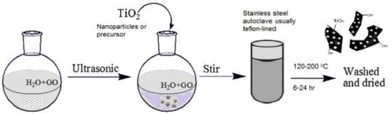 Schematic diagram of hydrothermal synthesis of GO-TiO2 nanocomposites. Reprinted with permission from [108] Copyright 2012 American Chemical Society.