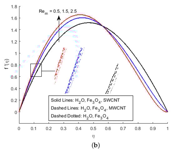 - Strengthening the magnetic Reynold’s number increases the strength of the opposing force of the axial velocity, which decreases the axial velocity of the flow.