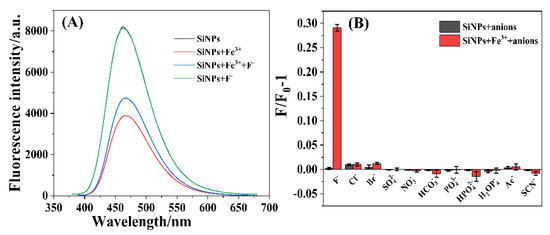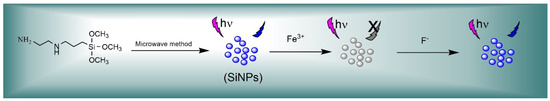 Ye H, Zhao L, Ren X, Cai Y, Chi H. “Switch-Off-On” Detection of Fe3+ and F− Ions Based on Fluorescence Silicon Nanoparticles and Their Application to Food Samples. Nanomaterials. 2022; 12(2):213. https://doi.org/10.3390/nano12020213