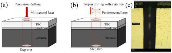 115. Wang, R.; Dong, X.; Wang, K.; Sun, X.; Fan, Z.; Duan, W. Two-step approach to improving the quality of laser micro-hole drilling on thermal barrier coated nickel base alloys. Opt. Lasers Eng. 2019, 121, 406–415. [Google Scholar] [CrossRef]