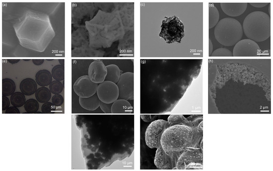 SEM photographs of (a) ZIF-67 and (b) dodecahedral Co3O4 nanocage. (c) TEM image of Co3O4. (d) SEM and (e) optical photographs of Co3O4-infilled microcapsules before carbonization. (f) SEM and (g) TEM images of carbonized microcapsules. (h) SEM and (i) TEM photographs of Co3O4-infilled microcapsule after breaking manually. (j) SEM image of microcapsules after loading sulfur.