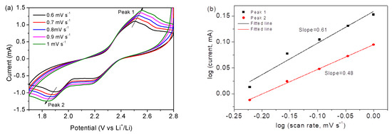 Recently, the demands for electric vehicles and portable electronics have been rapidly increasing. Considering this, investigations on secondary batteries are considered to be a significant direction. People are expecting higher capacity, longer cycling life, and faster charging of secondary batteries. As a promising next-generation secondary battery, the Li-S battery possesses a high theoretical energy density (2600 Wh kg−1) and low cost of sulfur [1,2,3,4]. Recently, the research on Li-S batteries has been considered to be a significant field [5,6]. There are many problems for currently available Li-S batteries, such as the volumetric change of sulfur and shuttle effect reducing the electrochemical performance, which represent obstacles to commercialization [7].