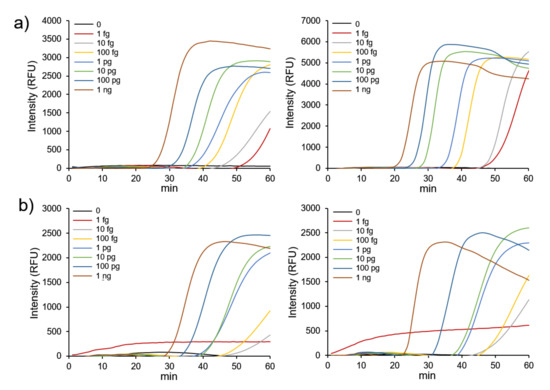 - Gao, X.; Sun, B.; Guan, Y. Pullulan reduces the non-specific amplification of loop-mediated isothermal amplification (LAMP). Anal. Bioanal. Chem. 2019, 411, 1211–1218. [Google Scholar] [CrossRef]