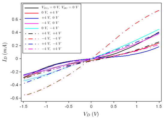 ID–VD dependence if VTG1 and VTG2 are connected while VBG is not connected.