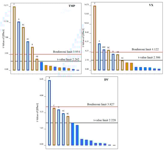 As regards toxicity, Equation (10) shows the obtained mathematical model, and its Pareto chart is also shown in Figure 4.