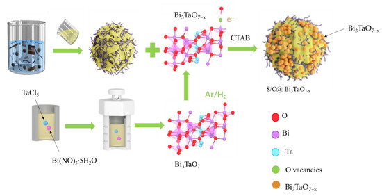 Schematic illustration of the synthesis of S/C@Bi3TaO7−x.