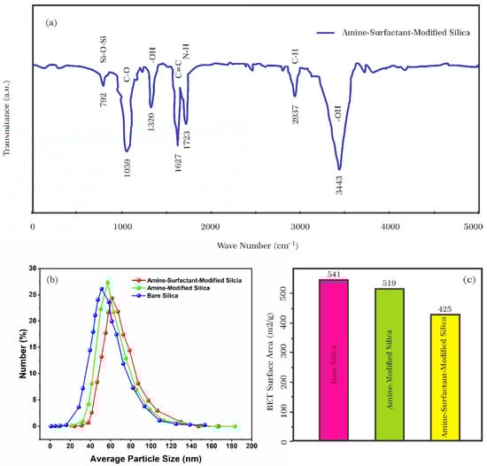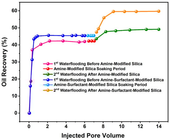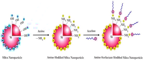 - Azarshin, S.; Moghadasi, J.; Aboosadi, Z.A. Surface Functionalization of Silica Nanoparticles to Improve the Performance of Water Flooding in Oil-Wet Reservoirs. Energy Explor. Exploit. 2017, 35, 685–697. [Google Scholar] [CrossRef]