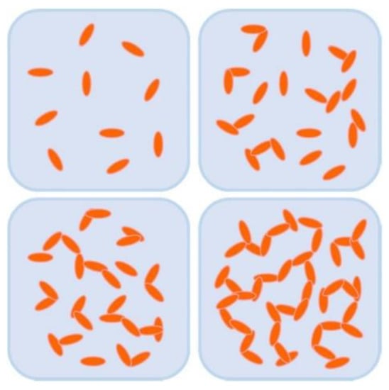 Most of the polymer materials are saturated systems, which have no free-moving electrons inside, and mainly rely on phonons for heat transfer. It is the most effective way to improve thermal conductivity by adding high thermal conductivity fillers into the polymer matrix [25,42,43,44]. The thermal conduction mechanism of filled thermal conductive composites mainly includes the thermal conduction pathways theory, thermal conduction percolation theory, and thermal elastic coefficient theory [22,45,46,47], of which the thermal conduction pathways theory is most accepted and applied by researchers. According to this theory, the heat conductive fillers form continuous heat transfer pathways in the polymer matrix by contacting and overlapping each other, as shown in Figure 1 [48]. At a low addition, the filler particles are distributed in the matrix like “islands”, and thus the distance between them is too long to form effective heat transfer pathways, leading to a relatively low thermal conductivity of the composite. With the increase of the additional amount, the particles contact each other, and a more continuous heat transfer network structure is gradually built in the matrix. The internal heat of the composite will be efficiently transferred along the continuous heat conductive filler, thus showing a significantly improved thermal conductivity. This is similar to the percolation phenomenon of electrically conductive polymers, and thus some researchers believe that there is also a thermal percolation phenomenon in thermal conductive composites.