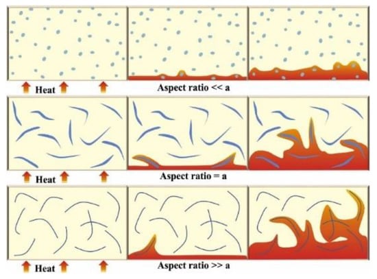Internal heat distribution of polymer composites added with fillers with different aspect ratios. Reprinted with permission from Ref. [22]. Copyright 2020 Elsevier.