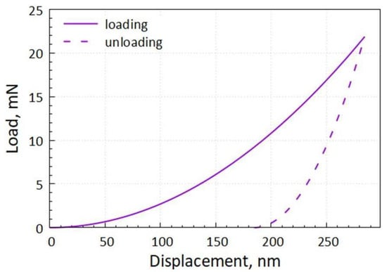 The most universal characteristic of the mechanical properties of coatings is microhardness. The microhardness of the coating at an indentation load of 21.86 mN is not less than 10 GPa. Figure 7 shows the load–displacement curve of the specimen deposited with the NiB-Cr7C3 coating.