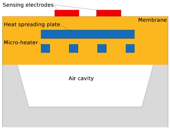 Cross-section schematic of the layers composing the membrane of the hotplate.