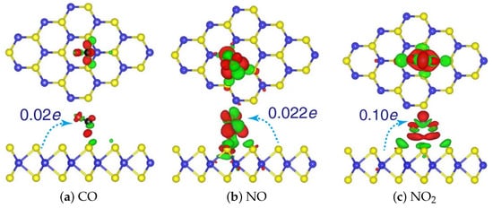 - Chen, G.X.; Wang, R.X.; Li, H.X.; Chen, X.N.; An, G.; Zhang, J.M. Sensing properties of nonmetal doped blue phosphorene toward NO and NO2 molecules: A first-principles study. Int. J. Quantum Chem. 2022, 122, e26919. [Google Scholar] [CrossRef]
