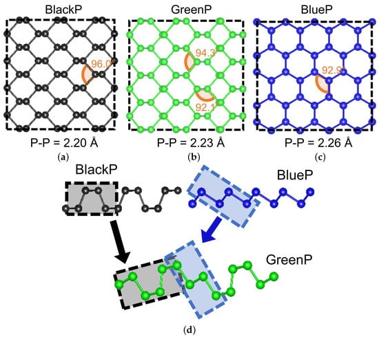 - Zhang, J.L.; Zhao, S.; Han, C.; Wang, Z.; Zhong, S.; Sun, S.; Guo, R.; Zhou, X.; Gu, C.D.; Yuan, K.D.; et al. Epitaxial growth of single layer blue phosphorus: A new phase of two-dimensional phosphorus. Nano Lett. 2016, 16, 4903–4908. [Google Scholar] [CrossRef] [PubMed]