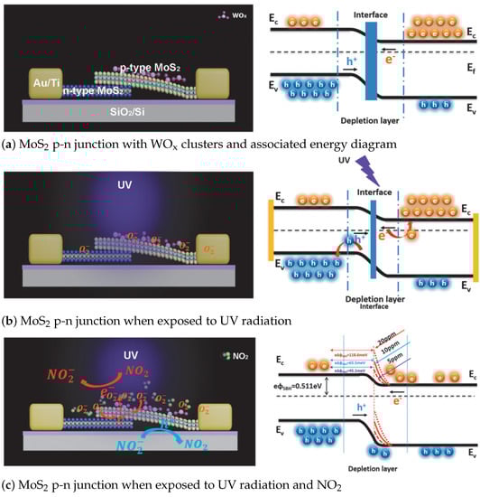 - Zheng, W.; Xu, Y.; Zheng, L.; Yang, C.; Pinna, N.; Liu, X.; Zhang, J. MoS2 van der Waals p-n junctions enabling highly selective room-temperature NO2 sensor. Adv. Funct. Mater. 2020, 30, 2000435. [Google Scholar] [CrossRef]
