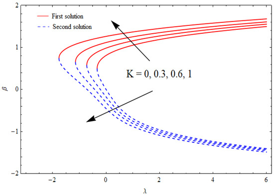 The most important part of this analysis is the prediction of multiple solutions to the dimensionless problem (17). It should be acknowledged that this question is now turned into finding the positive roots of the polynomial (24), which seem to have a crucial role in determining the dual solutions for the flow field. Moreover, one can see that only positive real and distinct roots present physically feasible solutions. Hence, to obtain the dual solutions, by rewriting Equation (24) in the following form: