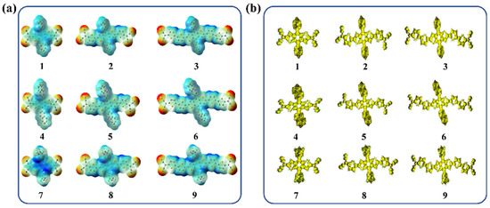 (a–i) are the isosurfaces of (isovalue = 1100) of the nine compounds (1–9).