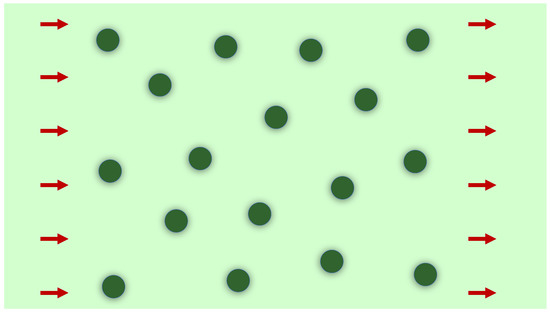 Let us now consider a uniform concentration (per unit transverse surface) of identical cylindrical dislocations, as depicted in Figure 3, represented by the density function