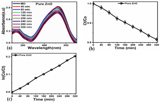 | Pure ZnO | MB | 69.60% | 240 min | 1.14 × 10−3 min |