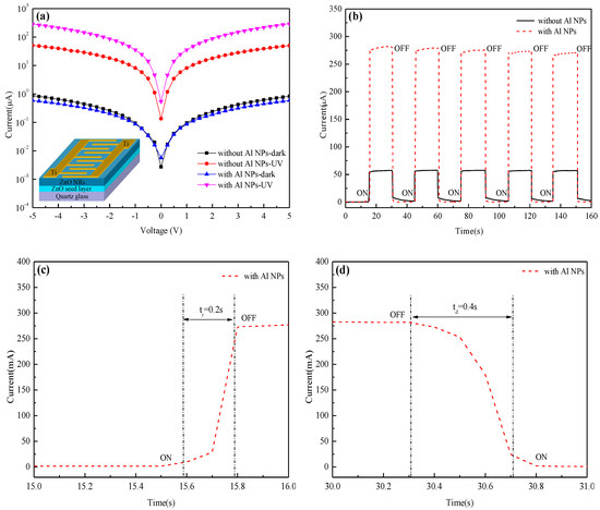Shang, S.; Dong, Y.; Zhang, W.; Ren, W. Fabrication and Performance of UV Photodetector of ZnO Nanorods Decorated with Al Nanoparticles. Nanomaterials 2022, 12, 3768. https://doi.org/10.3390/nano12213768