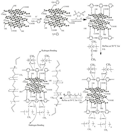 Formation of PANi/PMMA/PPG-b-PEG-b-PPG@FG nanocomposites.