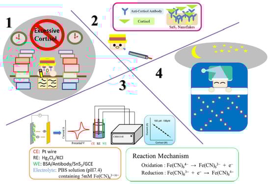 - Liu, X.; Hsu, S.P.C.; Liu, W.-C.; Wang, Y.-M.; Liu, X.; Lo, C.-S.; Lin, Y.-C.; Nabilla, S.C.; Li, Z.; Hong, Y.; et al. Salivary Electrochemical Cortisol Biosensor Based on Tin Disulfide Nanoflakes. Nanoscale Res. Lett. 2019, 14, 14–189. [Google Scholar] [CrossRef]