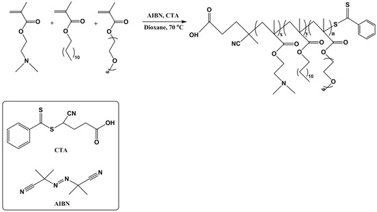 Synthesis of P(DMAEMA-co-LMA-co-OEGMA) terpolymers via RAFT polymerization.