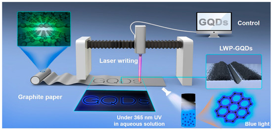 A schematic illustration for the generation of laser writing produced GQDs. Reprinted with permission from Ref. [52].