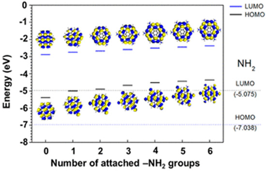 Systematic variations in HOMO–LUMO energy levels and the bandgaps due to increasing the number of attached -NH2 groups. Reprinted with permission from Ref. [105].