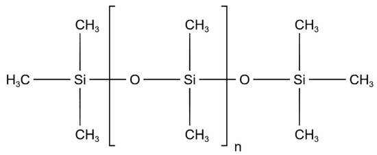 The main constituent material of SRIs is polydimethylsiloxane (PDMS), and its molecular formula is shown in Figure 2. Repeated Si-O bonds constitute the main chain of the molecule, and Si atoms are directly linked to polymers such as -CH3, -CH1, and -CH2. The vulcanization process strengthens the cross-linking between the major chains to create a flexible and durable polymer The strong polar effect of the Si-O bond is protected by the close arrangement of non-polar methyl groups around the Si-O backbone, which causes the silicone rubber surface to exhibit excellent hydrophobicity, and perform well as insulation [23].