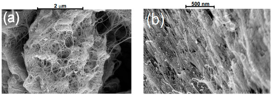 SEM images of (a) the initial SWCNTs, and (b) after high-pressure high-temperature treatment.