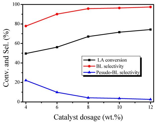 3.5. Effect of the Catalyst Dosage on LA Esterification