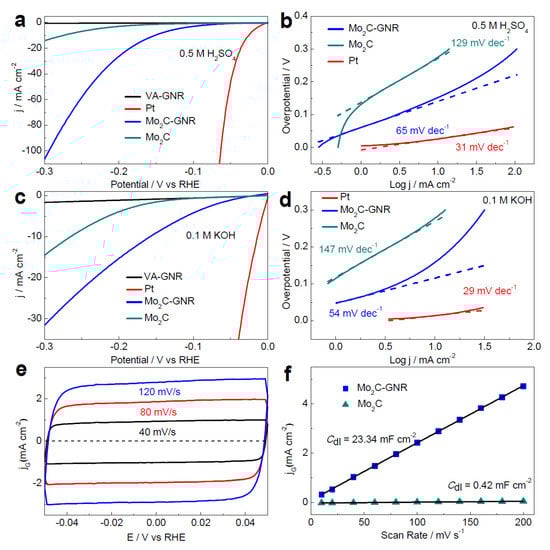 - Pan, L.F.; Li, Y.H.; Yang, S.; Liu, P.F.; Yu, M.Q.; Yang, H.G. Molybdenum carbide stabilized on graphene with high electrocatalytic activity for hydrogen evolution reaction. Chem. Commun. 2014, 50, 13135–13137. [Google Scholar] [CrossRef] [PubMed]
