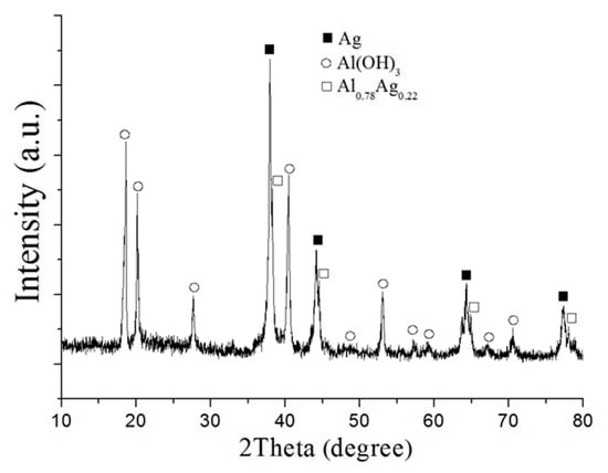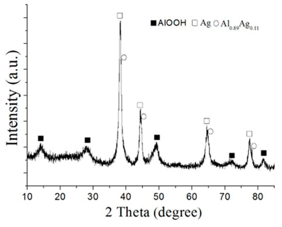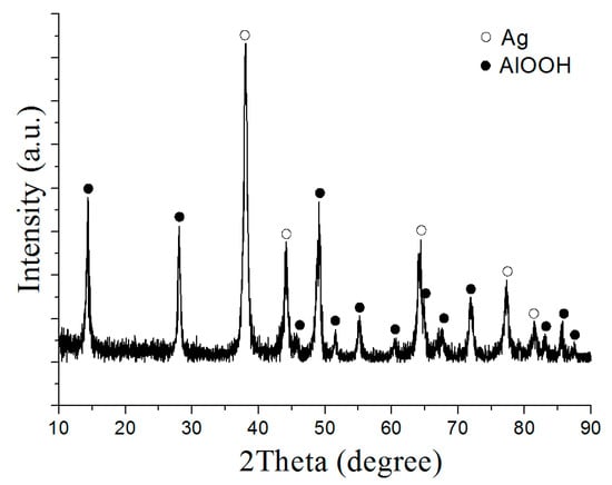 - Lozhkomoev, A.; Pervikov, A.; Bakina, O.; Kazantsev, S.; Gotman, I. Synthesis of antimicrobial AlOOH–Ag composite nanostructures by water oxidation of bimetallic Al–Ag nanoparticles. RSC Adv. 2018, 8, 36239–36244. [Google Scholar]