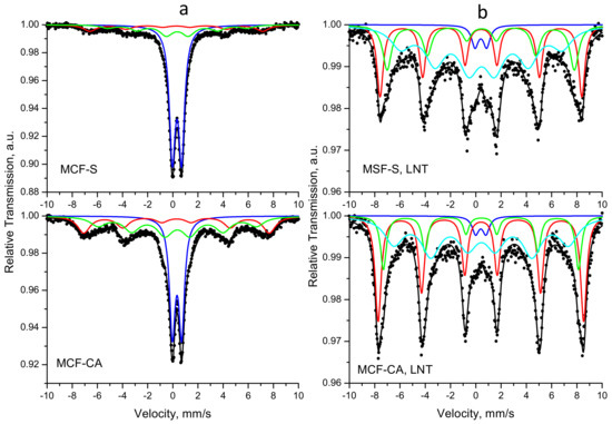 | MCF-CA, LNT | Sx1-Fe3+tetra | 0.41 | −0.01 | 50.4 | 0.57 | 37 |