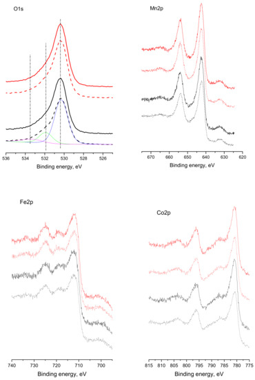 | Sample | Mn, at. % | Co, at. % | Fe, at. % | O, at. % | O/Me | |||||