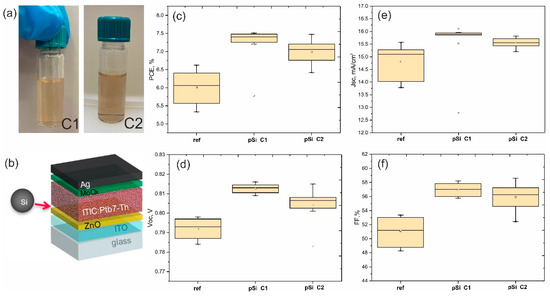 - Zhao, S.; Pi, X.; Mercier, C.; Yuan, Z.; Sun, B.; Yang, D. Silicon-nanocrystal-incorporated ternary hybrid solar cells. Nano Energy 2016, 26, 305–312. [Google Scholar] [CrossRef]