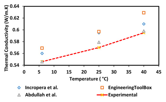 - “Water—Thermal conductivity”, Engineering Toolbox. Available online: https://www.engineeringtoolbox.com/water-liquid-gas-thermal-conductivity-temperature-pressure-d_2012.html (accessed on 28 December 2018).