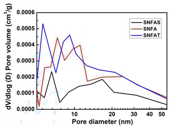 The pore size distribution of SNFAS, SNFA and SNFAT.