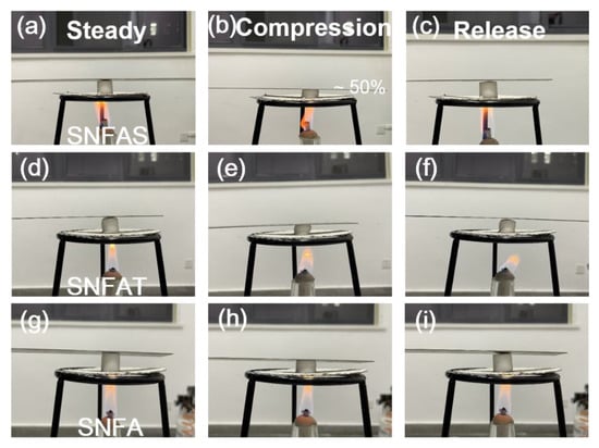Compression properties of (a–c) SNFAT, (d–f) SNFA and (g–i) SNFAS at high temperatures.