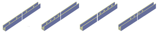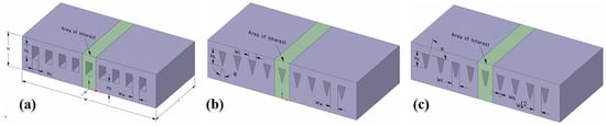 Some researchers have further investigated the effect of rectangular variable section microchannels on the performance of MCHS. The thermal performance of microchannel-width divergence–convergence microchannel heat sinks (DCMCHS) [91] has been studied, as shown in Figure 5. It was obtained that the smaller the inlet-to-center-width ratio of symmetrical DCMCHS, the lower the thermal resistance and the higher the pressure drop. However, the study of microchannel-width-convergence MCHS [92] found that their thermal performance and that of asymmetrical DCMCHS both increase as the ratio of outlet-to-inlet width decreases.