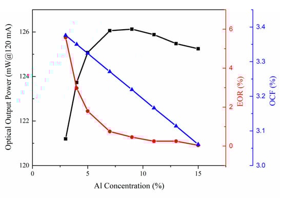 | Layers in LD Structure | Al or In Composition (%) | Layer Thickness (nm) | Doping Type | Doping Concentration (cm−3) | Dopant |