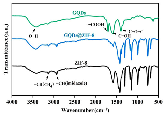 2.4. Preparation of GQDs@ZIF-8 Composites