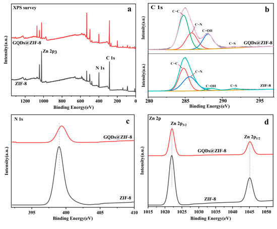 3.3. Chemical Components Analysis of GQDs@ZIF-8 Composites