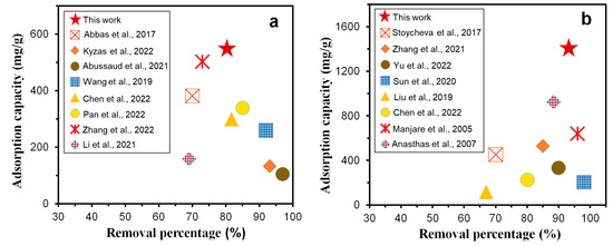 - Kyzas, G.Z.; McKay, G.; Al-Musawi, T.J.; Salehi, S.; Balarak, D. Removal of benzene and toluene from synthetic wastewater by adsorption onto magnetic zeolitic imidazole framework nanocomposites. Nanomaterials 2022, 12, 3049. [Google Scholar] [CrossRef]