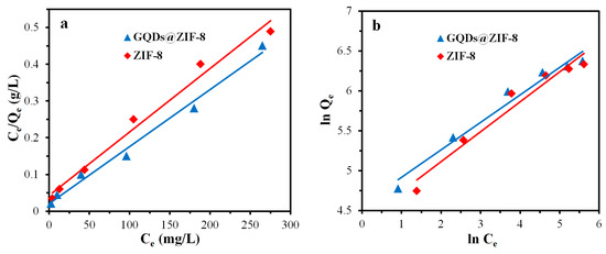 3.8. Adsorption Isotherm Study of GQDs@ZIF-8 Composites