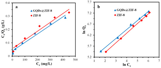 | GQDs@ZIF-8 | 1408.59 | 0.041 | 1453.93 | 0.99 | 1.41 | 0.000051 | 1474.31 | 0.97 | 2.93 |