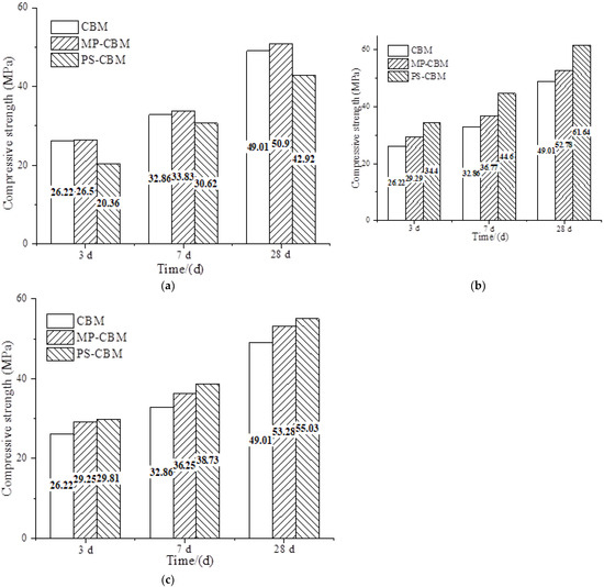 Furthermore, the compressive strength of PS-CBM reached the maximum value earlier than that of MP-CBM. When the compressive strength of MP-CBM reached a maximum, it was lower than that of PS-CBM.