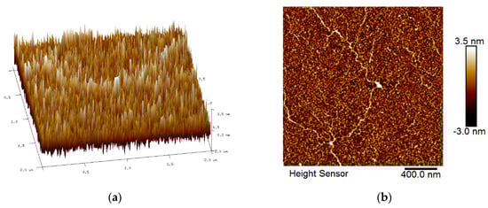 AFM images of PVA thin film: (a) 3D image and (b) 2D image.