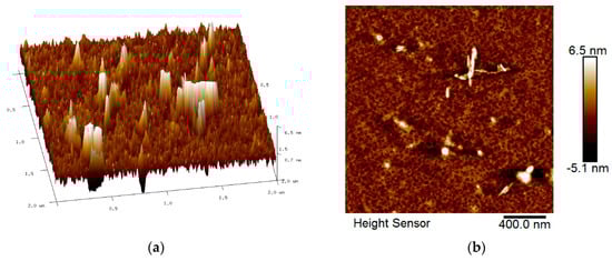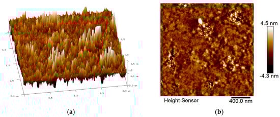AFM images of GQDs-PVA thin film after contact with carbaryl: (a) 3D image and (b) 2D image.
